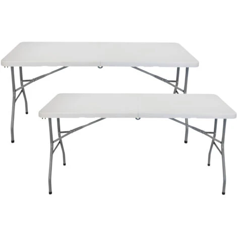 Pack de 2 Mesas plegables de 150cm rectangular de Orion91, di adiós a los problemas de espacio. Indicada tanto para uso interior como exterior. Podrás utilizarla en eventos como cumpleaños, picnics, reuniones familiares, cenas con amigos, bodas, comuniones o bautizos. Es plegable, por lo que su transporte y almacenamiento es muy cómodo y sencillo. Dispone de sistema de bloqueo de seguridad, armazón en acero para mayor estabilidad y asa de transporte. Fabricada en resina, muy fácil de limpiar incluso con un paño húmedo. Su diseño ligero y duradero resistirá ante las inclemencias del tiempo. Soporta la humedad y los rayos ultravioleta. Disponible en color blanco. Reúne a tu familia y amigos y utilízala como mesa auxiliar. Perfecta también para uso profesional en caterings. *Ten en cuenta que las imágenes, medidas y colores de algunos de nuestros productos son datos orientativos. En ocasiones, las pantallas pueden provocar pequeñas variaciones de visualización a causa del calibrado, el ángulo, la luz y otros factores.