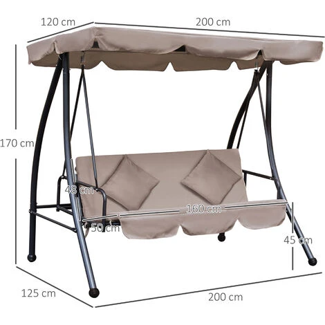 ¿Buscas un balancín para tu jardín? Este de Outsunny seguro que te gustará. Tiene capacidad para 3 personas, y cuenta con cojín entero de asiento y respaldo para mayor comodidad. Además, el respaldo se puede reclinar, convirtiéndose en una cómoda cama. La estructura es de acero tubular resistente y muy estable. El toldo incluido te permite ajustar el ángulo para protegerte del sol en los días más calurosos. Su elegante diseño combinará fácilmente con el estilo de tu jardín o terraza.
