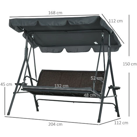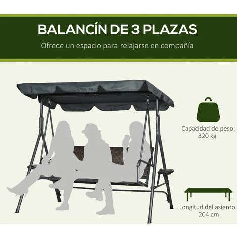 ● Columpio de jardín de ratán PE de 3 plazas, ideal para relajarse solo o con amigos