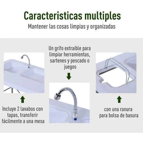 • Cuenta con 2 fregaderos con desagüe cónico para el drenaje del agua