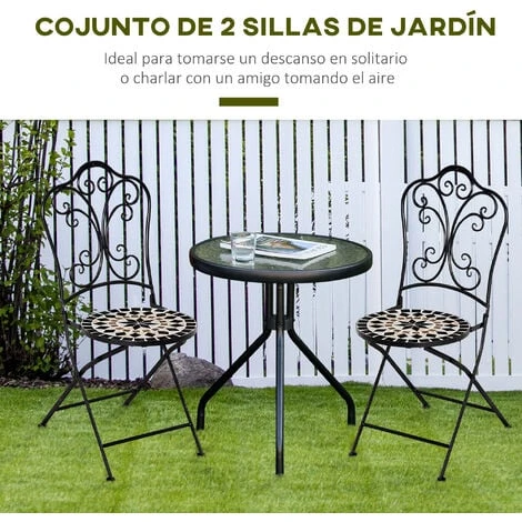 ● Conjunto de 2 sillas de jardín con un bonito diseño de mosaico