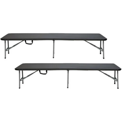 Pack de 2 Bancos plegables exterior 180cm de Orion91, la opción perfecta para disfrutar del buen tiempo en tu jardín o terraza. Idóneo tanto para uso en espacios interiores como exteriores. Una pieza imprescindible en caterings y campings. Dispone de sistema de seguridad y bloqueo, además, de asa de goma para un fácil transporte. El banco puede plegarse de manera sencilla y convertirse en un pequeño maletín muy cómodo de almacenar. Fabricado en resina de color blanco o negro. Este banco de exterior es ligero y perfectamente combinable con una mesa plegable del mismo estilo. Su sólido asiento se sustenta sobre resistentes patas de acero. La opción perfecta como asiento extra. Este banco de exterior ha sido diseñado para aguantar el peso de 2 o 3 personas. Soporta una carga máxima de 250kg y cuenta con unas dimensiones de 180x30x43 cm (largo x ancho x alto). Este banco plegable exterior de Orion91 es ideal para equipar jardines, pícnics, balcones, terrazas, fiestas de cumpleaños, barbacoas, meriendas en el campo o eventos en exteriores. Soporta temperaturas extremas, además, es impermeable y resistente a los rayos UV. Fácil de limpiar, elimina la suciedad de su superficie de manera sencilla con una gamuza humedecida en agua y jabón neutro. Evita el uso de productos químicos que puedan dañarlo. Sal ahí fuera y empieza a disfrutar del exterior con Orion91. *Ten en cuenta que las imágenes, medidas y colores de algunos de nuestros productos son datos orientativos. En ocasiones, las pantallas pueden provocar pequeñas variaciones de visualización a causa del calibrado, el ángulo, la luz y otros factores.