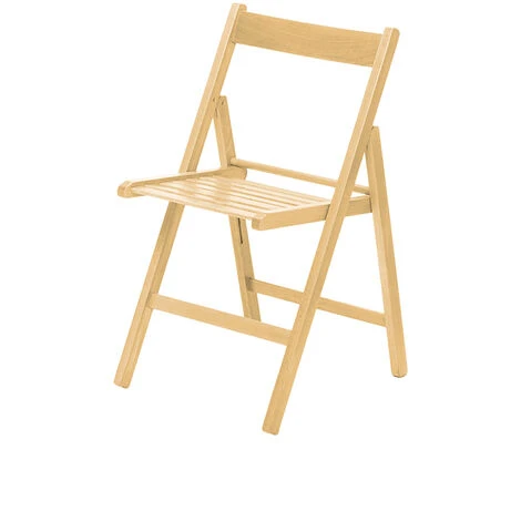 Las sillas plegables Bass son fuertes, ligeras y muy prácticas. Ideales para cuando tienes visita, o para eventos especiales, o para estancias con poco espacio pudiendo plegarla al acabar de usarla sin necesidad de tener sillas por la estancia. Su estructura de madera de haya la hace una silla muy resistente y aporta naturalidad y elegancia. Al ser plegable ocupa muy poco espacio al almacenarla. Como se fabrica con madera natural (más oscura o más clara) las tonalidad final puede variar con respecto a la fotografía mostrada. Se fabrican en color blanco, natural, cerezo o wengué. Pack de 4 unidades indivisible.Pack de 4 sillas Bass natural plegables con estructura de haya barnizada. Como se fabrica con madera natural (más oscura o más clara) las tonalidad final puede variar con respecto a la fotografía mostrada.