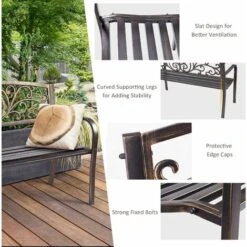 OUTSUNNY Banco Balancín Jardín Columpio De 2 Plazas Estable Tubo Metal 120x70x85 Cm Negro