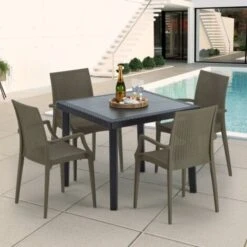 Mesa Cuadrada Negra 90×90 Cm Y 4 Sillas De Colores Bistrot Arm Passion Color: Marrón