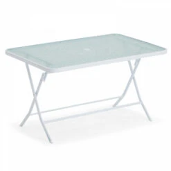 Mesa De Jardín Y 4 Sillas Plegables De Acero Y Cristal Blanco Calvi