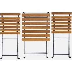 Mesa De Jardín Bistro De Madera Y Metal, 55 X 54 Cm, Sillas Plegables