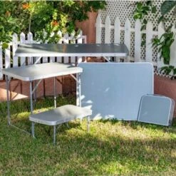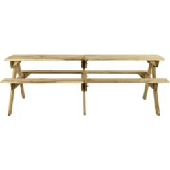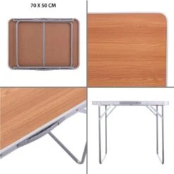 Mesa Maleta Camping Picknick Con 2 Bancos 90x66x70cm Plegable Aluminio Efecto Madera Portátil Jardín