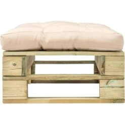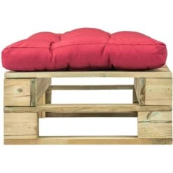 Otomana De Jardín De Palés Con Cojín Rojo De Madera Verde VidaXL