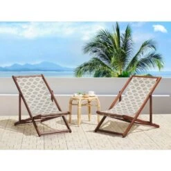 Conjunto De 2 Tumbonas De Jardín De Tela Beige Madera De Acacia Oscura Reclinable Plegable Anzio