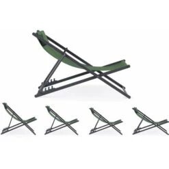 Juego De 2 Sillas De Metal De Textileno – Con Reposacabezas – Verde