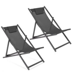 Juego De 2 Tumbonas Plegables De Acero Y Textileno Gris Antracita LOTA