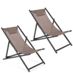 Juego De 2 Tumbonas Plegables De Acero Y Textileno En Color Topo LOTA