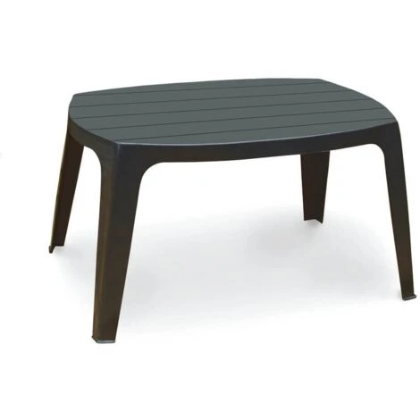 Mesa baja Kai 76 x 49 x 43 antracita.-Fabricada en resina de alta calidad.-Fácil limpieza.-Apta para exteriores.-Apilable.-Medidas: 76 x 49 x 43 cm.