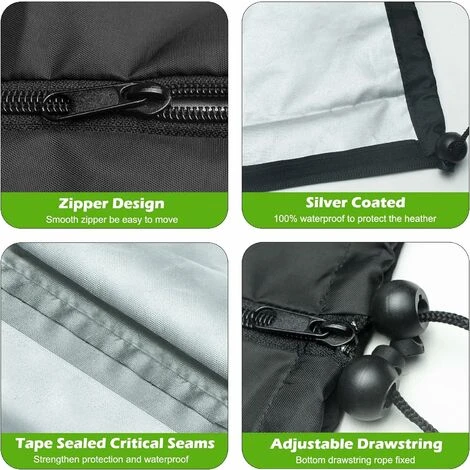 - 【Protección reforzada】 Éequipado con Una cremallera de arriba a abajo en el lateral facilita la instalación o extracción de la cubierta protectora exterior. Y el cordón ajustable en la parte inferior te ayuda a mantén la cubierta en su lugar para evitar vientos fuertes.