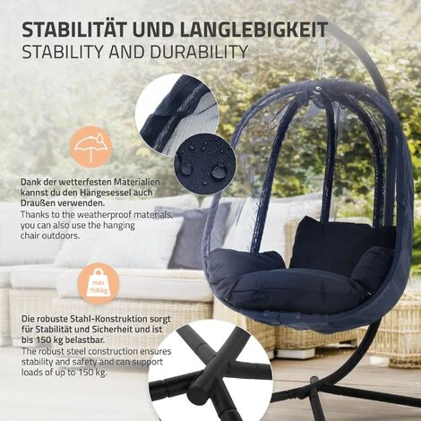 Dimensiones silla colgante (LxAxA): aprox. 85 x 65 x 98 cm