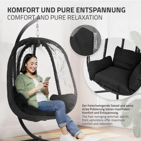Ya sea en la terraza, en el jardín o en el interior, la silla colgante le ofrece el máximo confort y pura relajación. Y lo mejor: ¡recibe los cojines de asiento a juego directamente con ella!