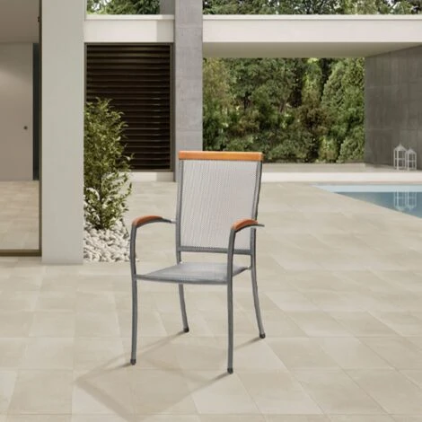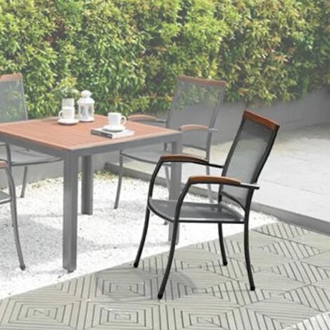 Con esta silla de jardín podrás disfrutar con los tuyos de las veladas al aire libre. Podrás sentarte en el porche, terraza o en la zona de piscina para descansar y relajarte. Además, por su diseño y estructura podrás apostar por esta silla para colocar varias alrededor de tu mesa de jardín. Así, tus comidas y cenas al aire libre se podrán alargar gracias a su comodidad. La silla está fabricada con acero con diseño de rejilla en color gris grafito y cuentan con detalles de madera de eucalipto en sus reposabrazos y respaldo para crear un contraste entre colores y materiales. Además su respaldo es alto y curvado para que la espalda se mantenga recta, tus invitados no querrán usar otro asiento! Sus colores hacen que puedas combinar esta silla con el resto de mobiliario de jardín, ya que encaja con cualquier estilo decorativo.