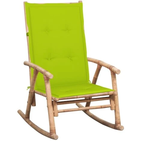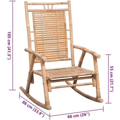 Hecha de bambú macizo, esta silla de patio es fácil de limpiar, resistente y duradera. Al ser resistente a la intemperie y a los rayos UV, la mecedora de bambú puede utilizarse en interiores y al aire libre. La silla mecedora será un aporte fabuloso para cualquier hogar. Además, el cojín incluido proporciona un plus de comodidad mientras descansas. Está hecho 100% de poliéster, tratado para ser impermeable. Cada cojín tiene una banda elástica y dos juegos de cuerdas para fijarlo firmemente en la silla.