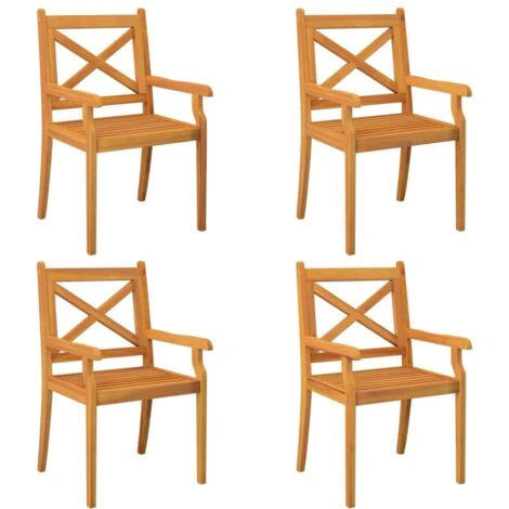 - Diseño elegante: Estas sillas, con un diseño cruzado en el respaldo y un diseño de listones en el asiento, están pensadas para ser el centro de atención de la casa.