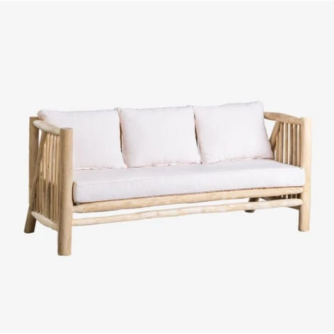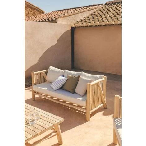 El Sofá de 3 Plazas de Jardín en Madera de Teca Narel con su estilo natural, te va a conquistar. Con un diseño elegante y cómodo, Narel está fabricado en resistente madera de teca, material que destaca por su robustez. Tiene un bonito acabado natural que resalta la belleza de la madera. Sus mullidos cojines desenfundables, están rellenos de espuma de poliuretano y las fundas están confeccionadas en algodón 100%. Disfruta de momentos de relax y desconexión con tu familia y amigos a la vez que renuevas la decoración de tus espacios outdoor, dándoles un toque fresco y desenfadado. Aconsejamos limpiarlo con jabón neutro y evitar el uso de productos químicos. A pesar de ser aptos para el exterior, recomendamos proteger los muebles de los fenómenos atmosféricos y guárdalos al abrigo, sobre todo en los meses de más frío. Cojines no impermeables. Dimensiones (Alto x Ancho x Profundo): 78 cm x 179 cm x 80 cm IMPORTANTE: El servicio estándar puerta a puerta no incluye la subida al domicilio, tanto en la entrega como en la recogida, de esto deberá hacerse cargo el cliente. Cabe la posibilidad que el repartidor de manera voluntaria ayude en la subida de la mercancía (siendo esto totalmente voluntario por el repartidor y la empresa de transporte y ajeno a Sklum).El montaje tampoco se encuentra incluido.