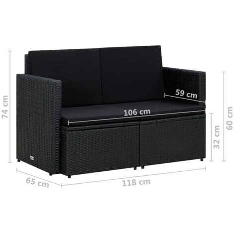 - Dimensiones del sofá: 118 x 65 x 74 cm (ancho x profundo x alto)