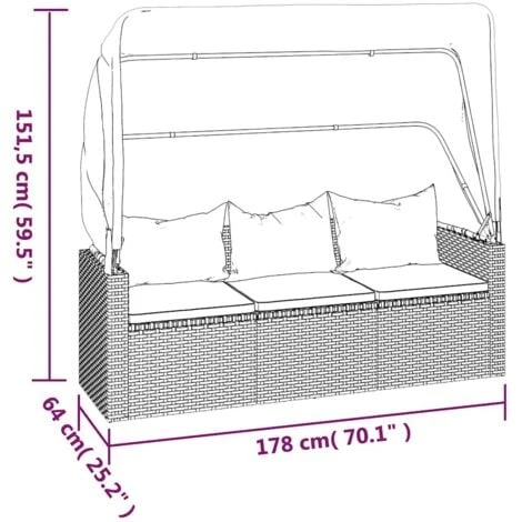 Este cómodo sofá de jardín de 3 plazas con toldo y taburete es una combinación perfecta de estilo y funcionalidad.