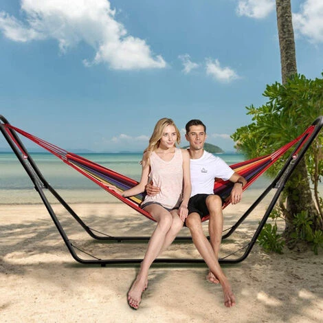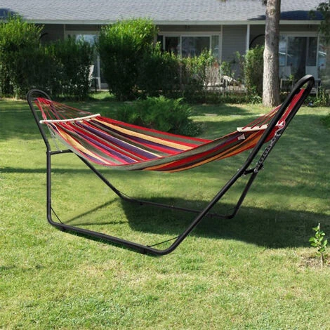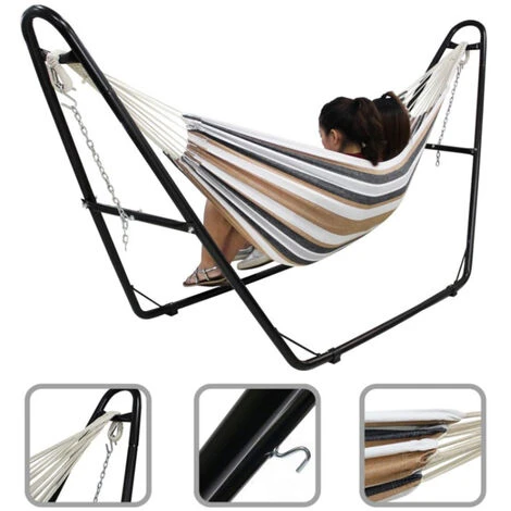 Lea o tome el sol de forma segura en el jardín o el patio, y es ligero y portátil. Se puede instalar en cualquier lugar donde se necesite una hamaca.