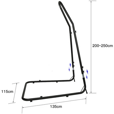 • Altura ajustable: este soporte para hamaca le permite ajustar la altura (200-250 cm) a su gusto. Este diseño es suficiente para satisfacer las necesidades de todos, sin embargo, toda la familia puede usar el soporte de la hamaca ajustando la altura.
