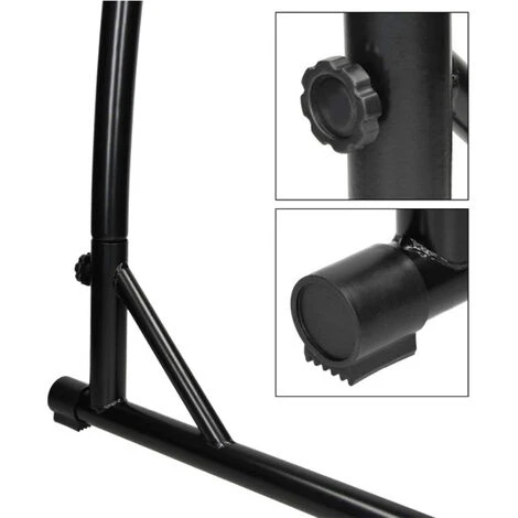 5. Parte de la construcción de acero de esta estructura de hamaca está recubierta de polvo y resistente a la intemperie. La base en forma de X garantiza estabilidad y seguridad. Este diseño moderno y elegante sin duda atraerá la envidia de vecinos y amigos. 6. La estructura Consta de tubos de acero y deben insertarse entre sí y fijarse con tornillos estrella (incluidos). es muy compacto después del desmontaje. El montaje es muy fácil y rápido, incluso, también encontrará que los ganchos en forma de S se pueden utilizar para hamacas.