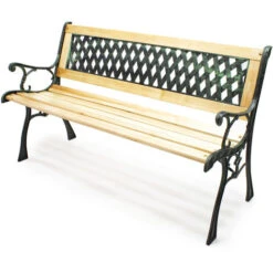 Banco Jardín Asiento Parque Inge Madera Y Hierro Fundido Respaldo Rejilla 2 Plazas Interior Exterior