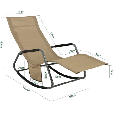 - La tumbona es un mueble útil y ligero con unas dimensiones de aproximadamente 57 x 145 x 84 cm y un peso de 8.7 kg.