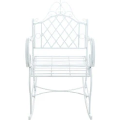 Mecedora De Hierro Forjado Con Acabado Blanco Envejecido 127x64x90 Cm
