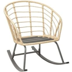Silla Mecedor Acapulco – Patas Negras Verde Claro – Acero, Mimbre Sintético