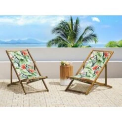 2x Silla De Playa Plegable De Madera Tumbona Amarilla Jardín Hamaca Impermeable