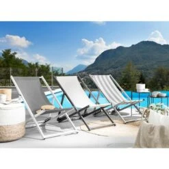 Tumbona De Jardín Gris Marco Aluminio Blanco Plegable Respaldo Ajustable Aire Libre Locri