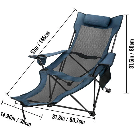 La silla de campamento plegable reclinable azul, el salón de malla y el reposapiés son más anchos y cómodos que otras sillas. Nuestra silla de campamento plegable ajustable está hecha de tela y malla Oxford de alta calidad, que es duradera y confiable. Puede comprarla con confianza.