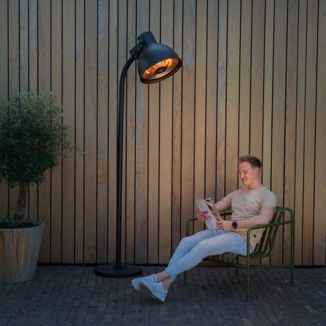 - La potente lámpara de infrarrojos de 2000W emite calor de forma selectiva. Por lo tanto, el calefactor es fácil de colocar, por ejemplo, junto a la mesa de comedor en el exterior, o de colocar junto a una mesa de pie.