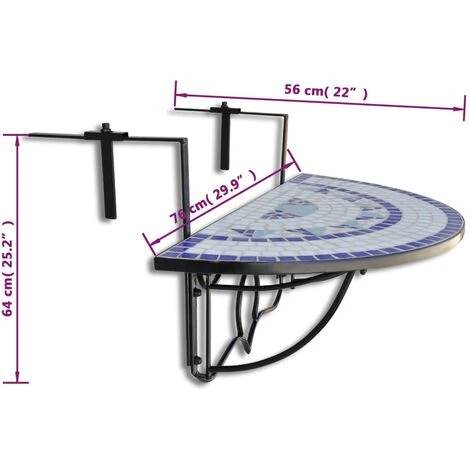 Esta mesa colgante para balcón es elegante y práctica con un diseño semicircular. Seguramente es un excelente aporte a su balcón, sirviendo como una mesa de centro para colocar la bebida o cualquier otra cosa que necesite al alcance de la mano. La estructura de hierro contribuye a la robustez, mientras que la mesa de cerámica semicircular es resistente a la intemperie y fácil de limpiar. Esta mesa de balcón se puede conectar a cualquier plataforma o riel de balcón de hasta 18 cm de ancho. Se puede plegar fácilmente cuando no está en uso, ¡ahorrando más espacio! ¡Lleve esta mesa de balcón con mosaico a casa y aproveche al máximo el espacio del balcón!
